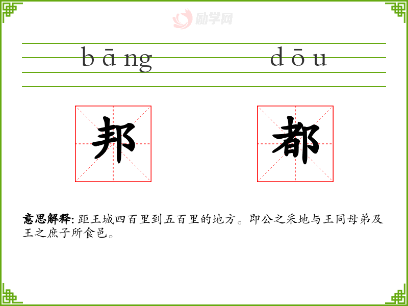 邦都的意思是:距王城四百里到五百里的地方。即公之采地与王同母弟及王之庶子所食邑。