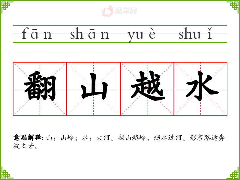 《说文》-越,度也。 《广雅》-越,渡也。 《吕氏春秋·长攻》-越十七扼。 曹操《短歌行》-越陌度阡。 《楚辞·天问》-崖可越焉? 明·袁宏道《满井游记》-越天都之胁。 清·姚鼐《登泰山记》-越长城之限。