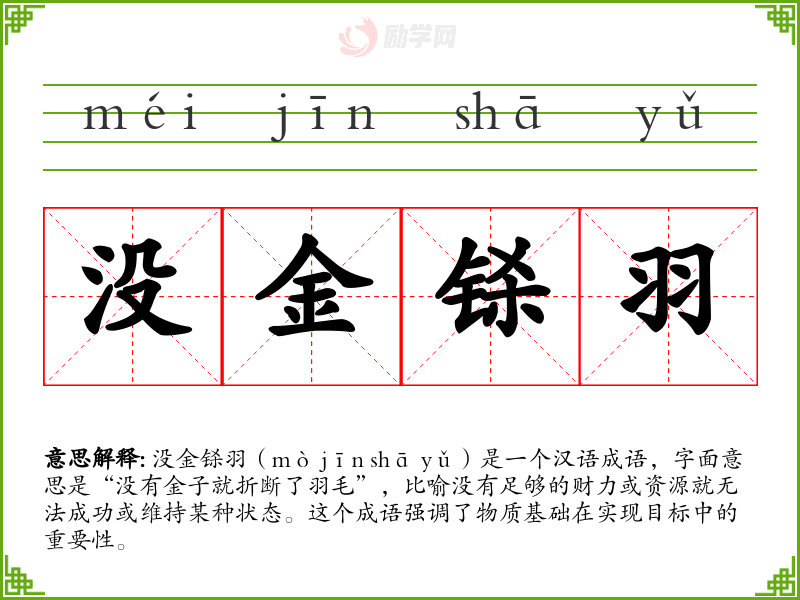 在传统文化中,财富和资源一直被视为成功的重要因素。没金铩羽**这个成语正是这种观念的体现,它强调了在社会和经济活动中,没有足够的资金支持是难以取得成功的。