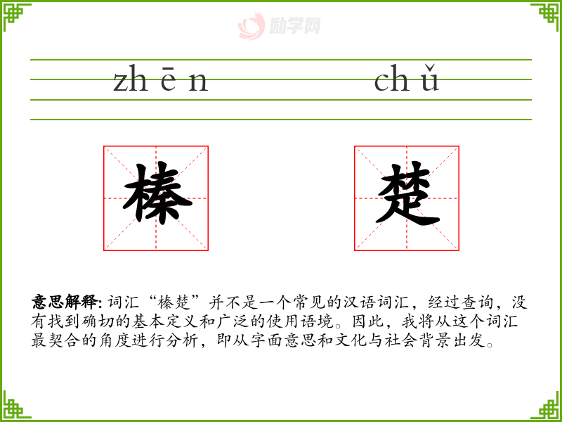 由于“榛楚”不是一个标准词汇,我们可以尝试从字面上理解: