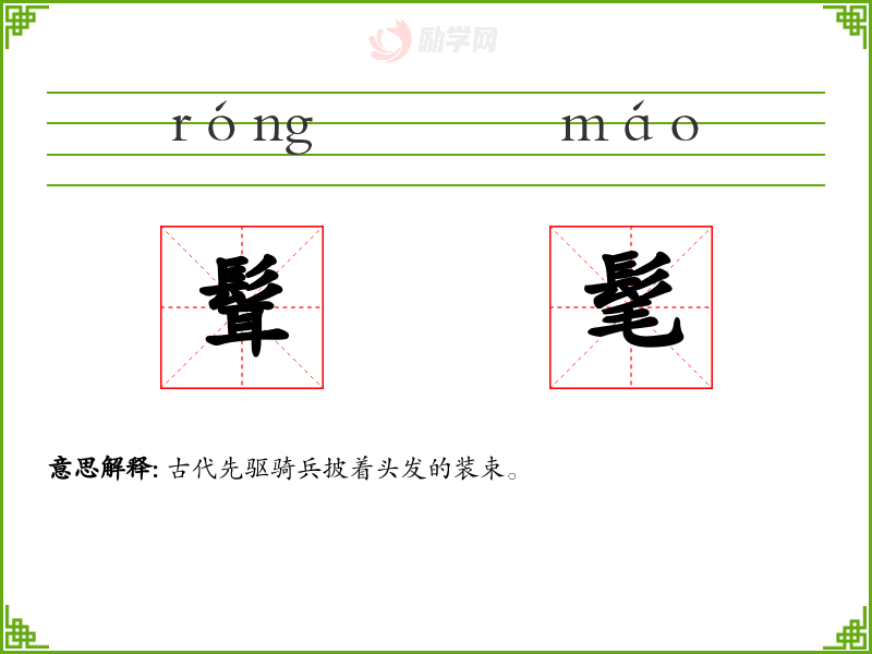 髶髦的意思是:古代先驱骑兵披着头发的装束。