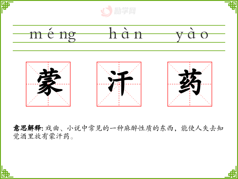 1.蒙汗药的拼音是什么?蒙汗药怎么读?