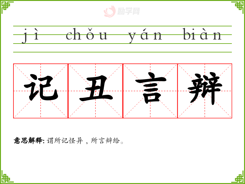 1.记丑言辩的拼音是什么?记丑言辩怎么读?