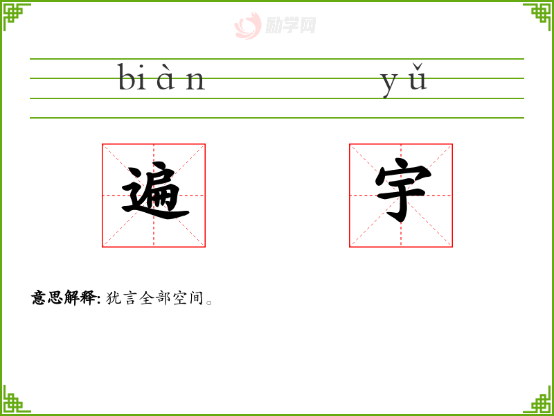 遍宇的意思是:犹言全部空间。