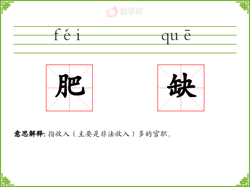 肥缺的意思是:指收入(主要是非法收入)多的官职。