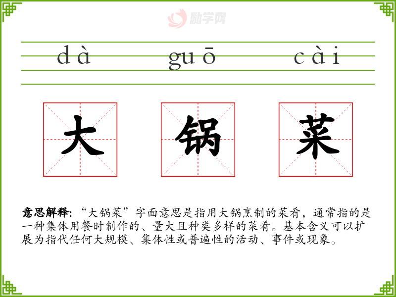1.大锅菜的拼音是什么?大锅菜怎么读?