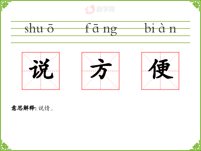 说方便的拼音是:shuō fāng biàn