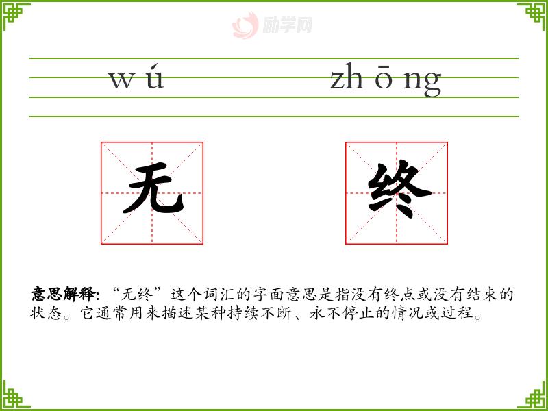“无终”这个词汇的字面意思是指没有终点或没有结束的状态。它通常用来描述某种持续不断、永不停止的情况或过程。