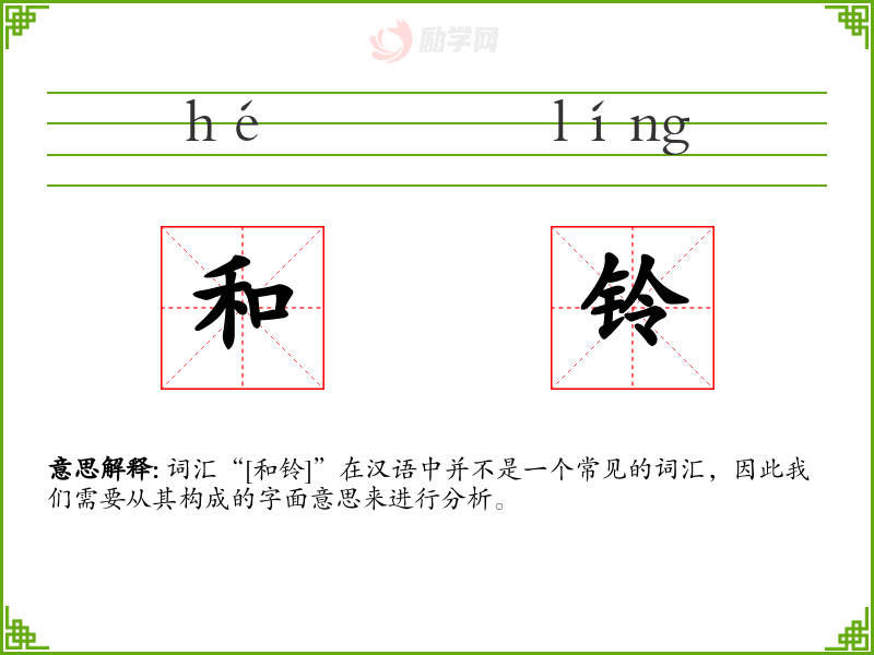 词汇“[和铃]”在汉语中并不是一个常见的词汇,因此我们需要从其构成的字面意思来进行分析。
