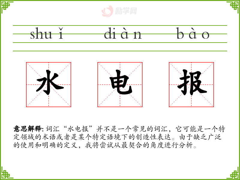 1.水电报的拼音是什么?水电报怎么读?
