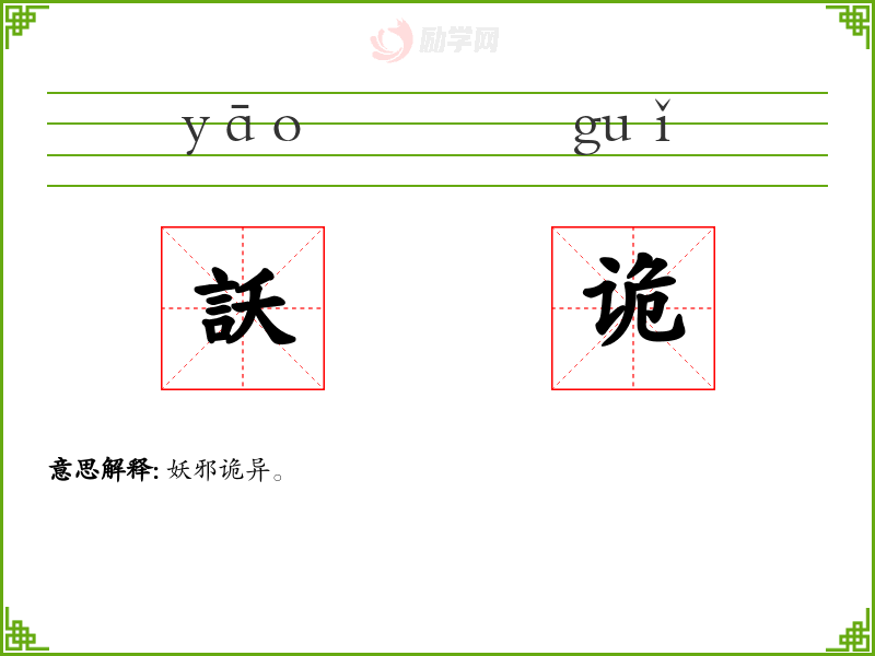 訞诡的意思是:妖邪诡异。