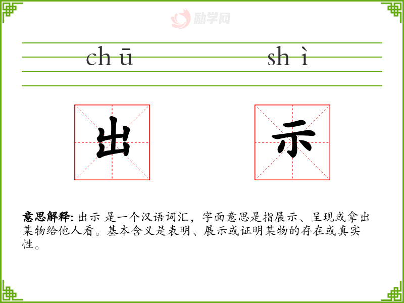 出示的拼音是:chū shì