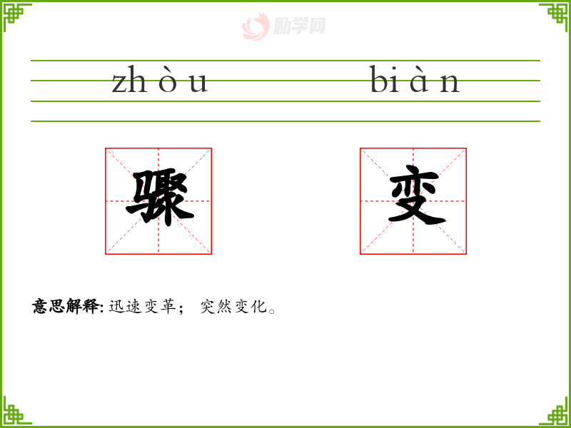 《说文》-骤,马疾步也。 《周礼·大司马》-车骤徒趋。 《楚辞·招魂》。注:“走也。”-步及骤处兮。 《礼记·曲礼》-车驱而驺(骤)。 《诗·小雅·四牡》-驾彼四骆,载骤骎骎。
