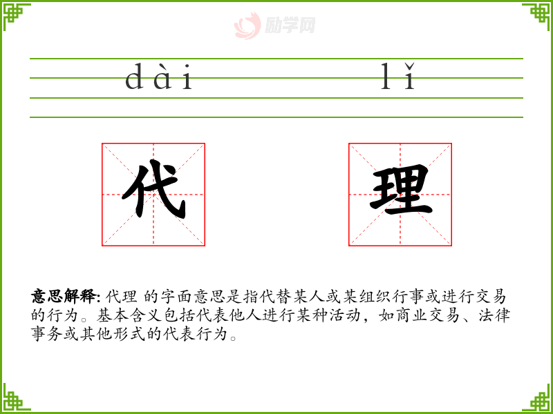 - 专业领域:在法律、商业等领域,“代理”有更精确的定义,如法律上的代理人、商业中的代理商等。