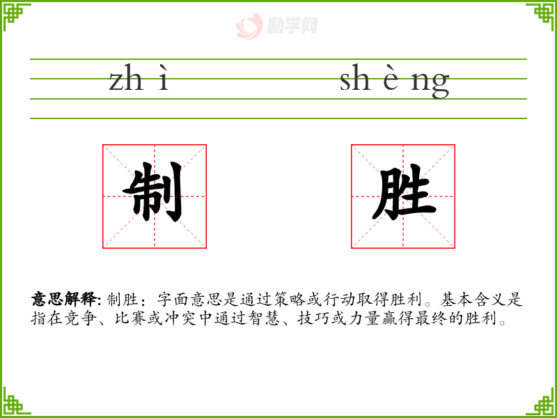 - 专业领域:在军事、商业或体育等领域,“制胜”强调策略和技巧的重要性,如“战术的巧妙运用是制胜的关键。”