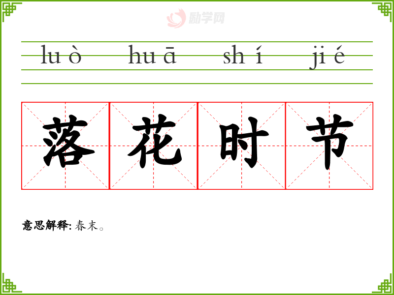 《说文》-时,四时也。 《释名》-四时,四方各一时,时,期也。 《左传·桓公六年》。注:“春夏秋也。”-谓其三时不害。 《孟子·篇叙》。注:“谓时曰支干五行相孤虚之属也。”-三时者,成岁之要时。又,天时不如地利。 《孟子·梁惠王上》-斧斤以时入山林。 《左传·闵公二年》-时事之征也。 《管子·山权数》-时者,所以记岁也。 《淮南子·天文》-四时者,天之吏也。 《尔雅·释天》。注:“道光照也。”-四时和谓之宝烛。 《书·尧典》。马注:“羲和四子掌四时。”-敬授人时。 宋·欧阳修《醉翁亭记》-四时之景不同,而乐亦无穷也。 《左传·桓公六年》-谓其三时(指春夏秋)不害,而民和年丰也。