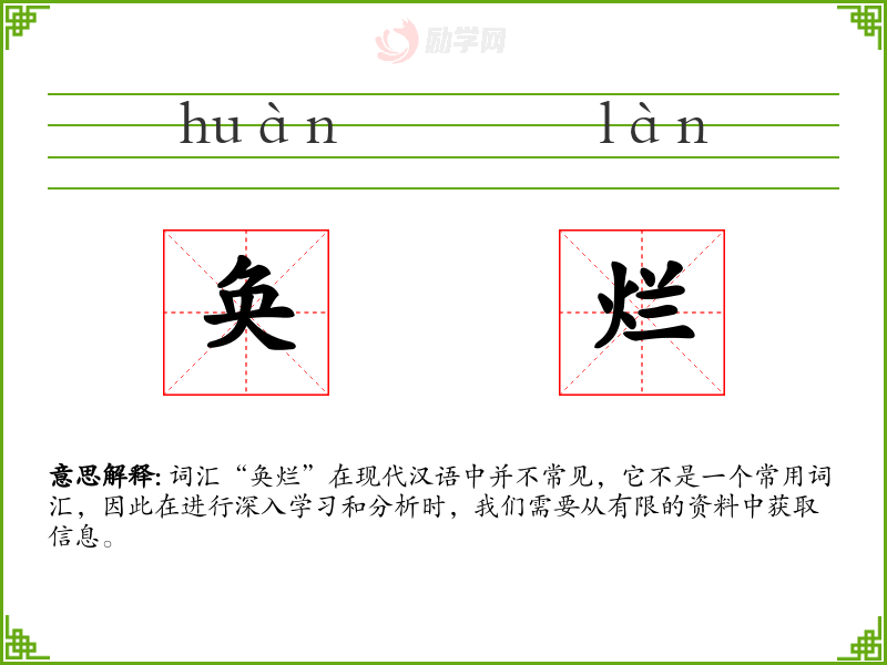 词汇“奂烂”在现代汉语中并不常见,它不是一个常用词汇,因此在进行深入学习和分析时,我们需要从有限的资料中获取信息。