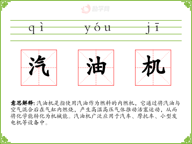 1.汽油机的拼音是什么?汽油机怎么读?