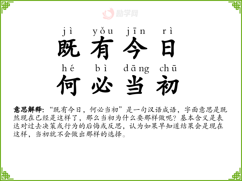 1.既有今日,何必当初的拼音是什么?既有今日,何必当初怎么读?