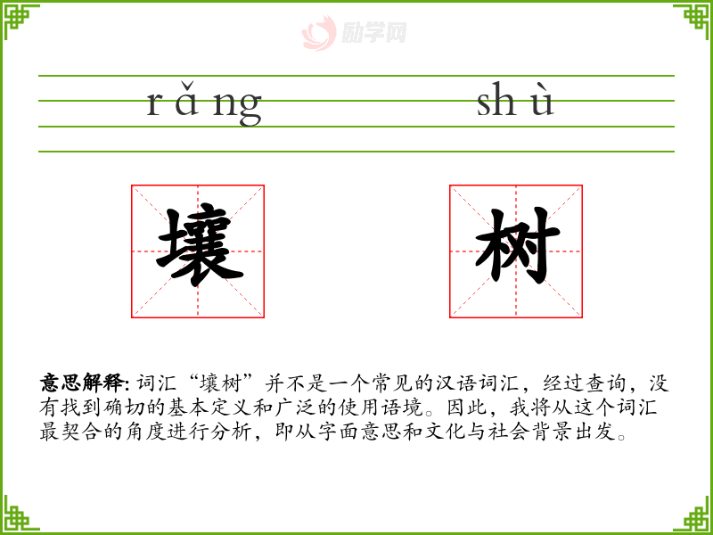 词汇“壤树”并不是一个常见的汉语词汇,经过查询,没有找到确切的基本定义和广泛的使用语境。因此,我将从这个词汇最契合的角度进行分析,即从字面意思和文化与社会背景出发。