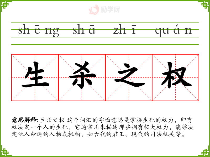1.生杀之权的拼音是什么?生杀之权怎么读?
