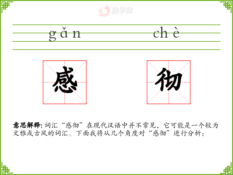 词汇“感彻”在现代汉语中并不常见,它可能是一个较为文雅或古风的词汇。下面我将从几个角度对“感彻”进行分析: