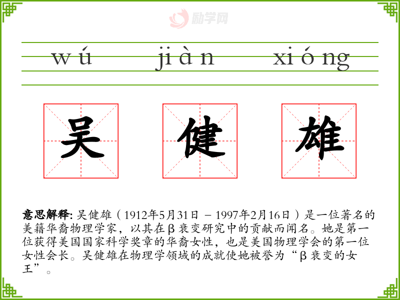 1.吴健雄的拼音是什么?吴健雄怎么读?