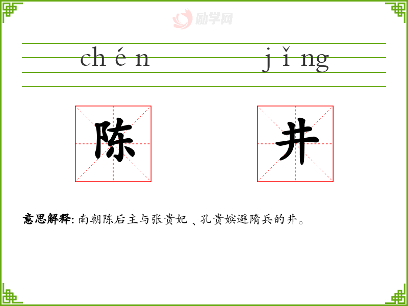 陈井的意思是:南朝陈后主与张贵妃﹑孔贵嫔避隋兵的井。
