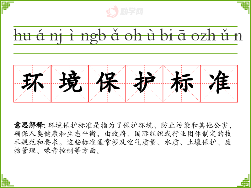 1.环境保护标准的拼音是什么?环境保护标准怎么读?