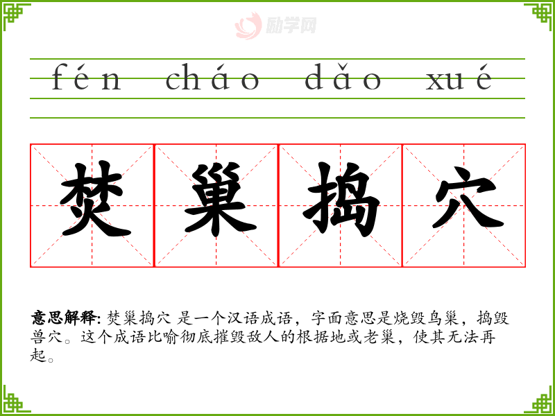 1.焚巢捣穴的拼音是什么?焚巢捣穴怎么读?