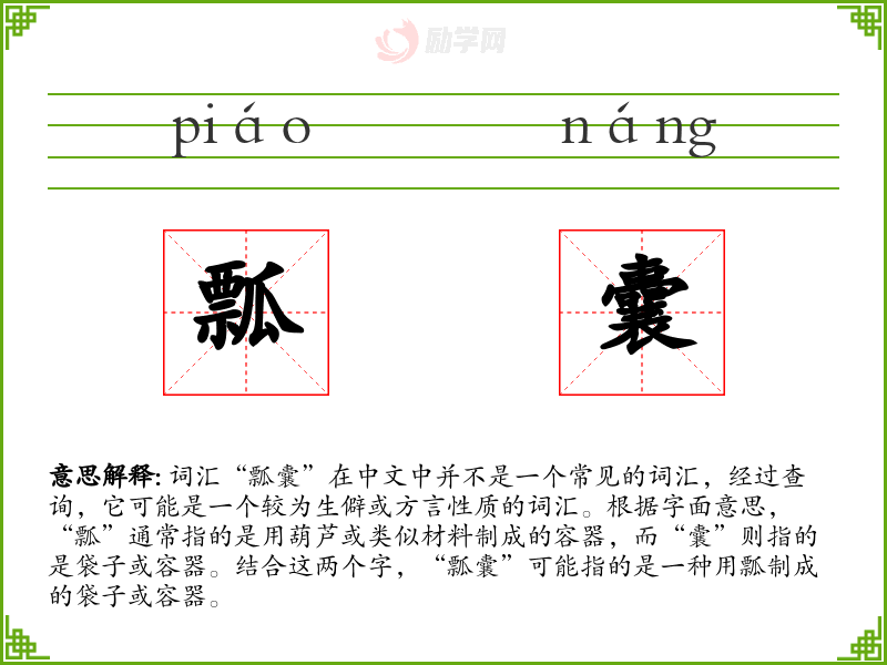 1.瓢囊的拼音是什么?瓢囊怎么读?