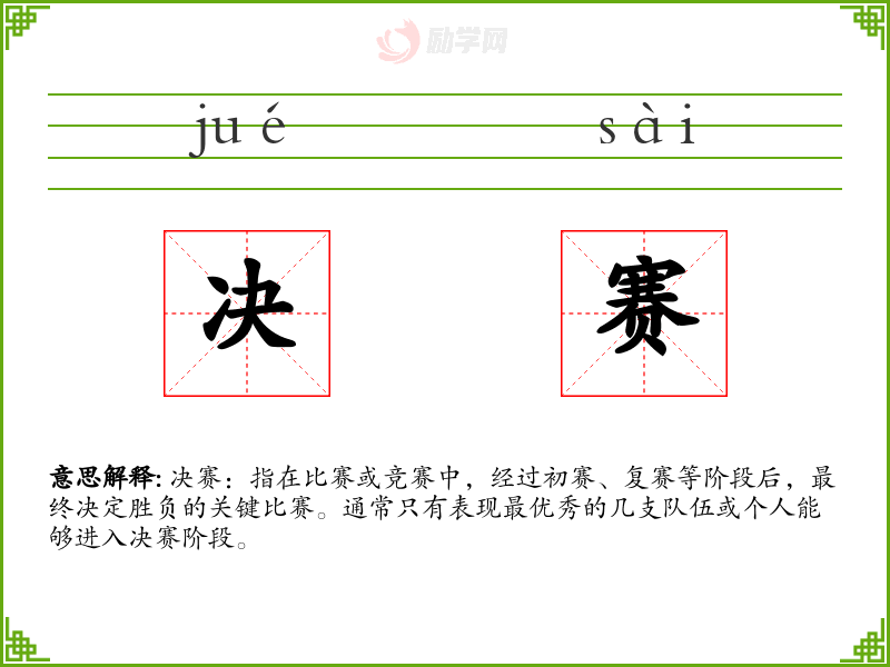 1.决赛的拼音是什么?决赛怎么读?
