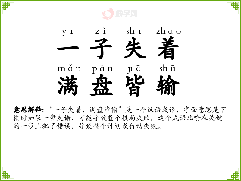 1.一子失着,满盘皆输的拼音是什么?一子失着,满盘皆输怎么读?