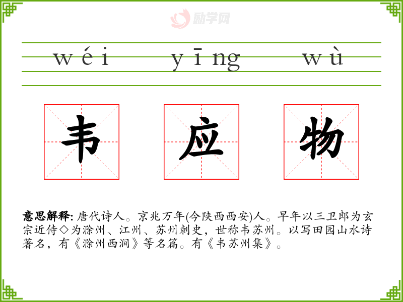 1.韦应物的拼音是什么?韦应物怎么读?