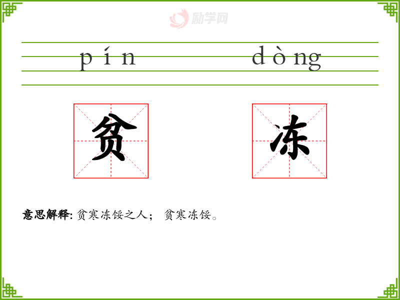 贫冻的意思是:贫寒冻馁之人; 贫寒冻馁。