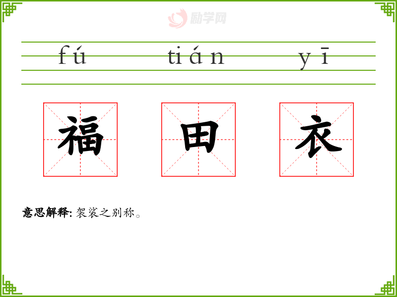 福田衣的意思是:袈裟之别称。