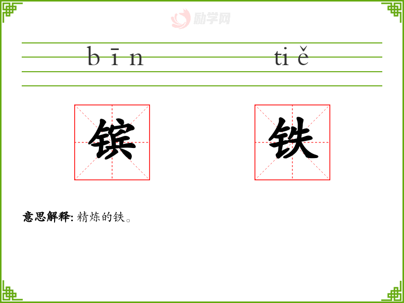 《说文》-铁,黑金也。 《墨子·备穴》-铁锁长三丈。 《史记·货殖列传》-邯郸郭纵以冶铁成业。