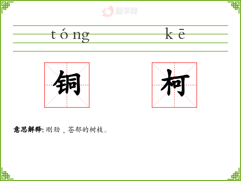铜柯的意思是:刚劲﹑苍郁的树枝。