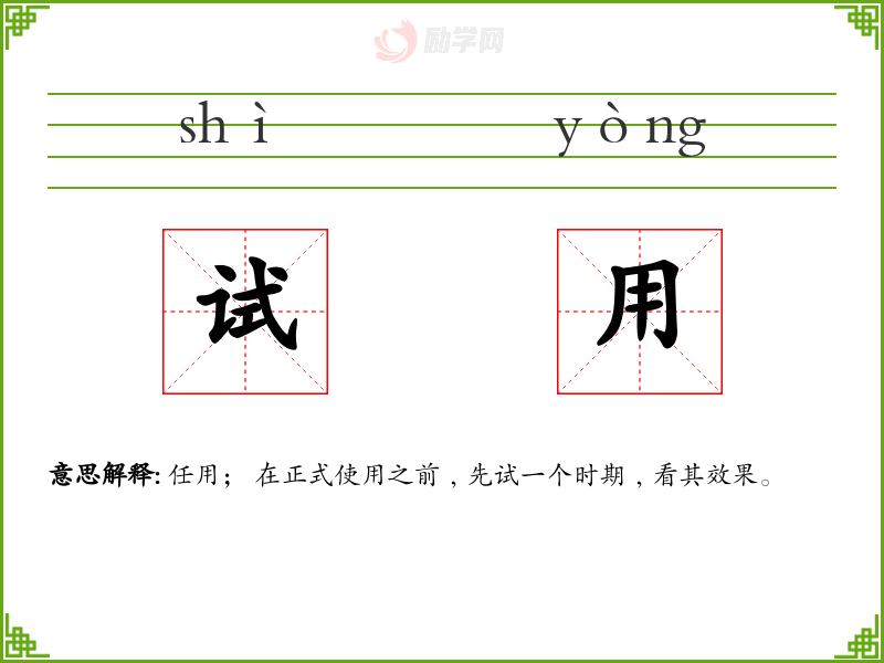 试用的拼音是:shì yòng