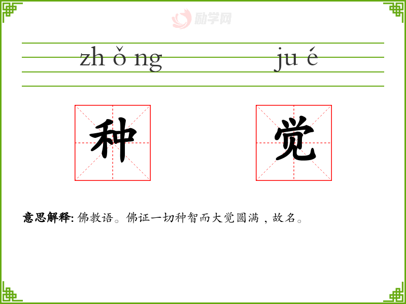 种觉的意思是:佛教语。佛证一切种智而大觉圆满﹐故名。