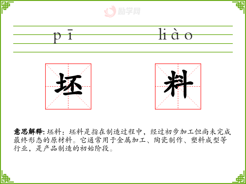 - 专业领域:在工程、制造业和手工艺领域,坯料是一个常用术语,用于描述材料的初始加工状态。