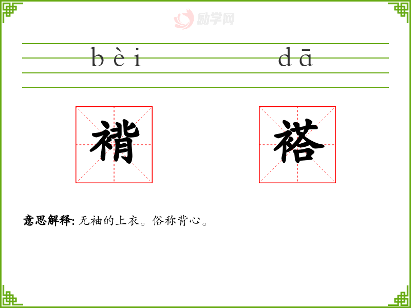 褙褡的意思是:无袖的上衣。俗称背心。