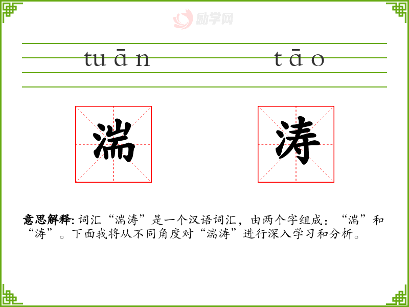 - 词源:“湍”和“涛”都是古代汉语词汇,历史悠久。