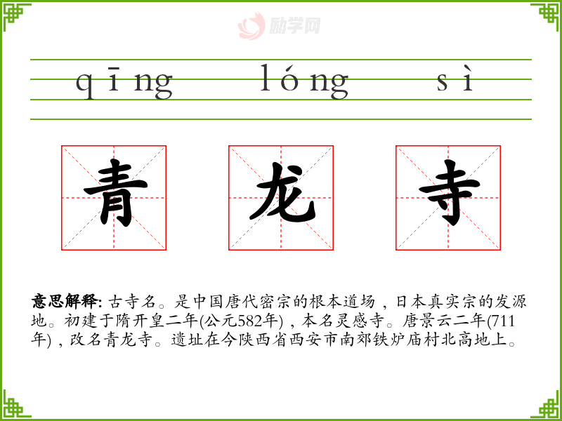 1.青龙寺的拼音是什么?青龙寺怎么读?
