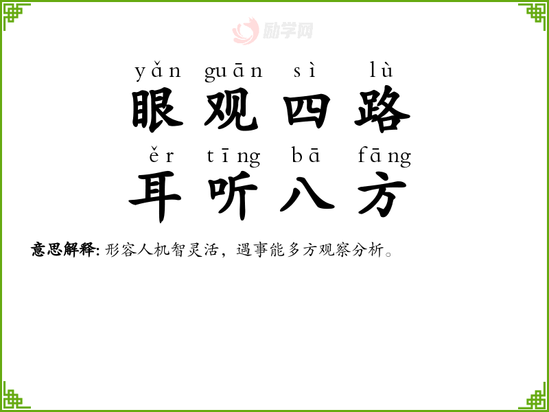 1.眼观四路,耳听八方的拼音是什么?眼观四路,耳听八方怎么读?