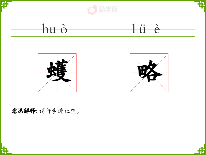 蠖略的意思是:谓行步进止貌。