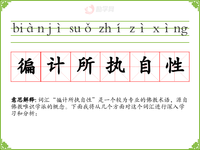 词汇“徧计所执自性”是一个较为专业的术语,源自唯识学派的概念。下面我将从几个方面对这个词汇进行深入学*和分析: