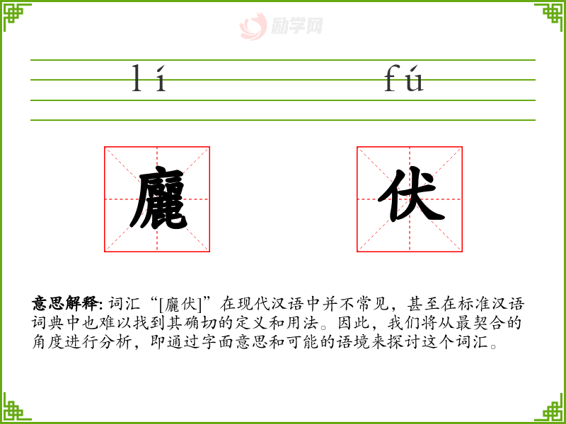 词汇“[廲伏]”在现代汉语中并不常见,甚至在标准汉语词典中也难以找到其确切的定义和用法。因此,我们将从最契合的角度进行分析,即通过字面意思和可能的语境来探讨这个词汇。
