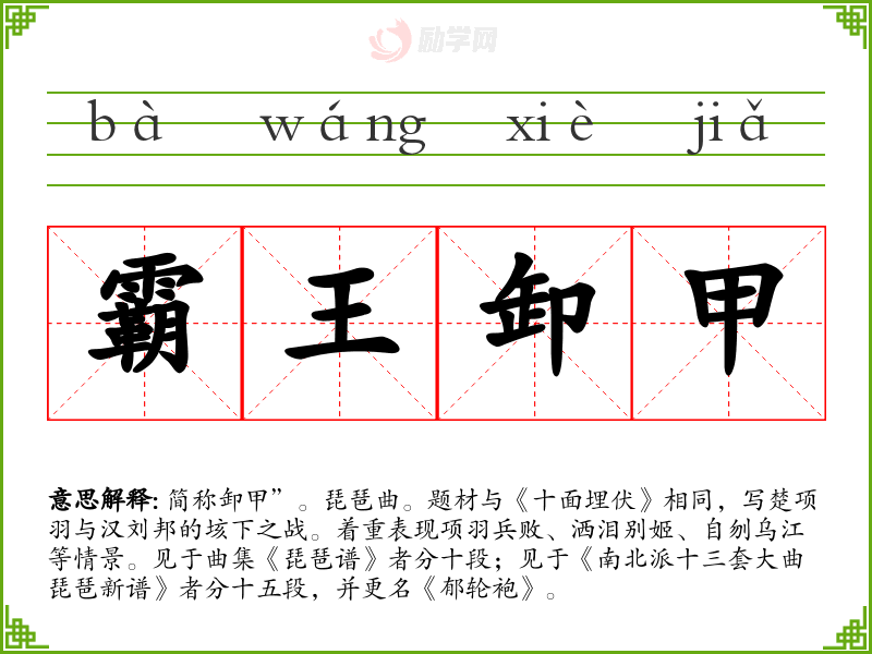 1.霸王卸甲的拼音是什么?霸王卸甲怎么读?