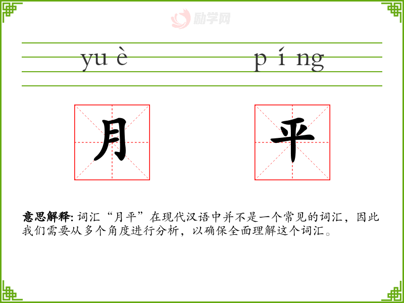词汇“月平”在现代汉语中并不是一个常见的词汇,因此我们需要从多个角度进行分析,以确保全面理解这个词汇。